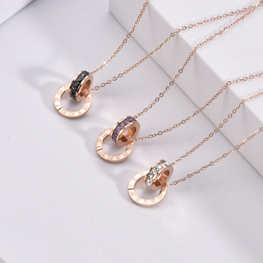 Roman Numeral Ring Diamond Titanium Steel Necklace Women's