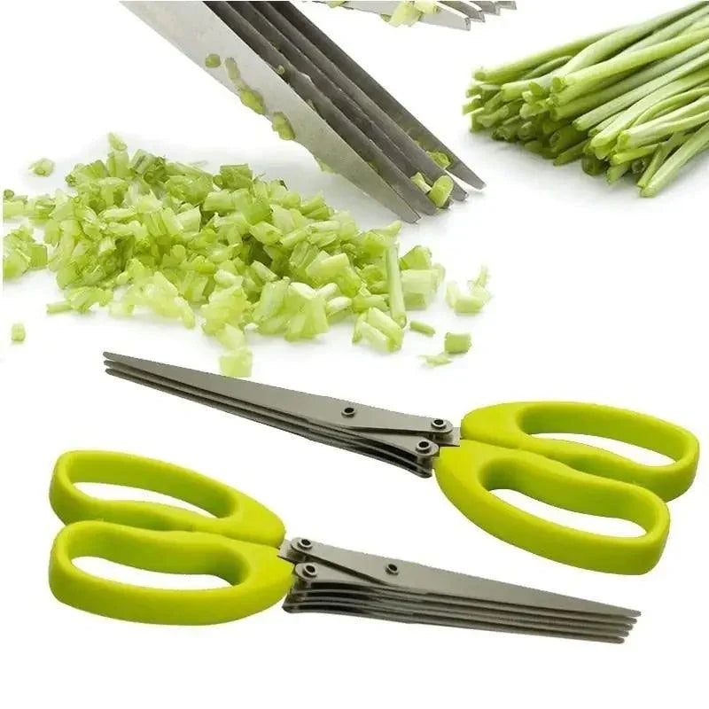 Introducing our 5-Layer Kitchen Scissors, the ultimate companion for simplifying your daily meal preparations. Whether you're adding a finishing touch of green onions to a baked potato or infusing your favorite soup with fresh herbs, this versatile tool is engineered to streamline your kitchen tasks. Crafted with precision from high-quality stainless steel blades, it effortlessly slices and dices, transforming kitchen chores into a breeze. Make this indispensable tool a cornerstone of your kitchen, and embrace a straightforward, no-nonsense approach to cooking that will elevate your culinary creations while saving you valuable time and effort.