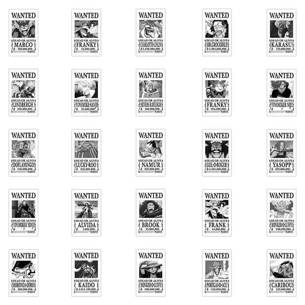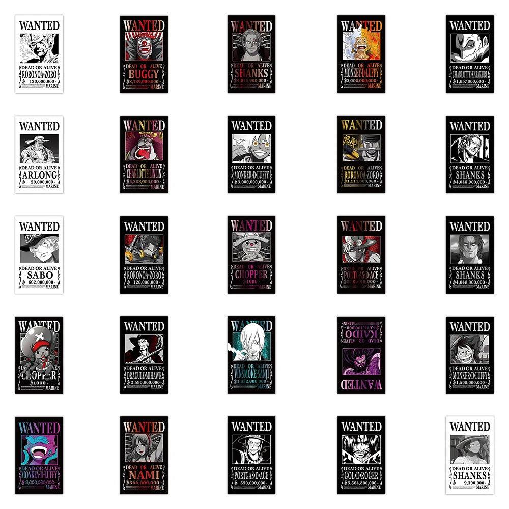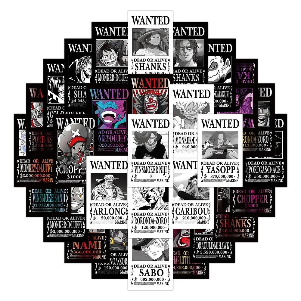- The stickers take the form of wanted posters, a theme often seen in the One Piece series where characters have bounties on their heads.